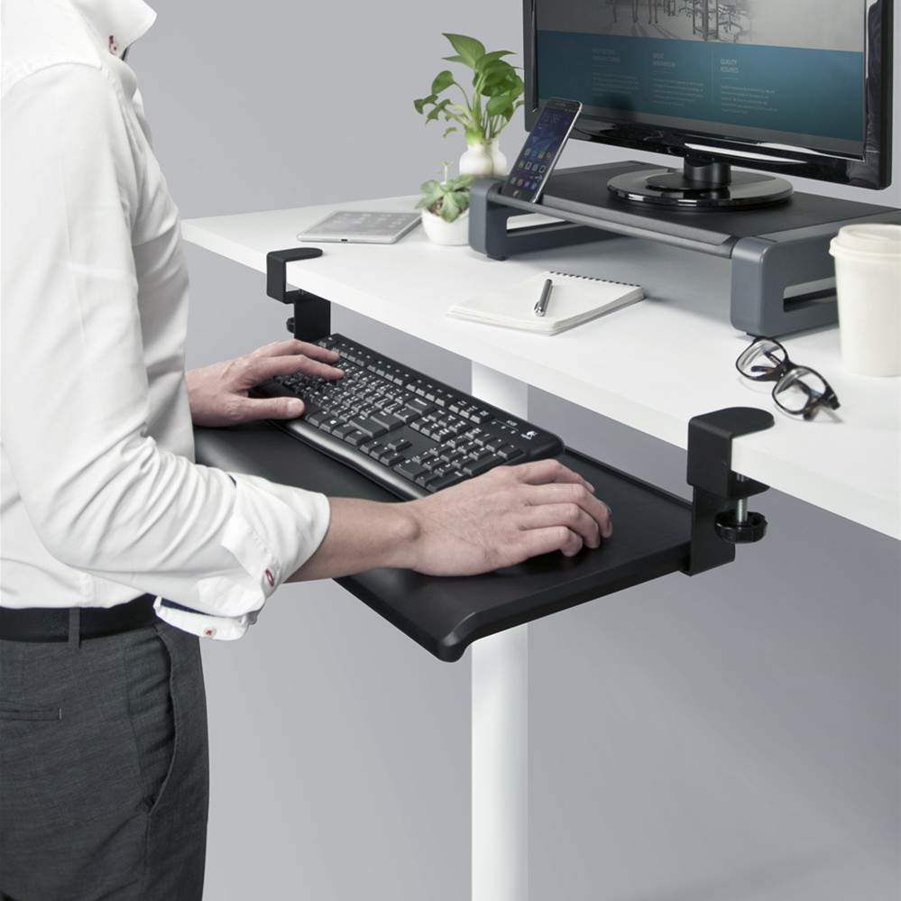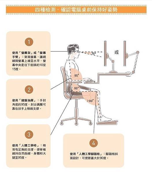 桌下式的鍵盤架一直都存在於市面上,也是市售電腦桌的標配。但仍有許多人因各種原因,而沒有在正確位置使用電腦鍵盤,比如:公配辦公桌的上班族、內附家具的租屋族等。大家可以參考下圖,檢視一下自己使用電腦的姿勢合不合格哦。